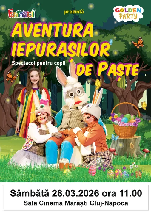 Spectacolul „Aventura Iepurașilor de Paște ” este o călătorie ce merită făcută cu toată familia - vom cânta, vom dansa, vom râde și ne vom bucura împreună de magia Paștelui într-un show plin de energie și surprize.